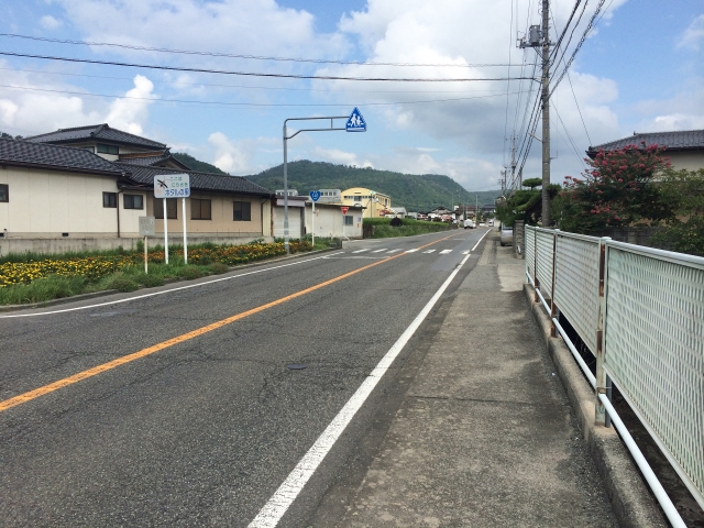 白い実線は片側6m以上の広い道路に引かれています。6m以上と道幅が広いため、その線の内側での追越しは可能ですが、その線を跨いでの追越しは禁止されています。