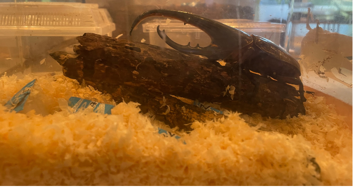 館内に足を踏み入れると、まず目を引くのが生体展示コーナーです。なかでも人気なのが、迫力満点のヘラクレスオオカブトです。大きな体と力強い角を間近で見ることができ、その圧倒的な存在感に思わず見入ってしまいます。