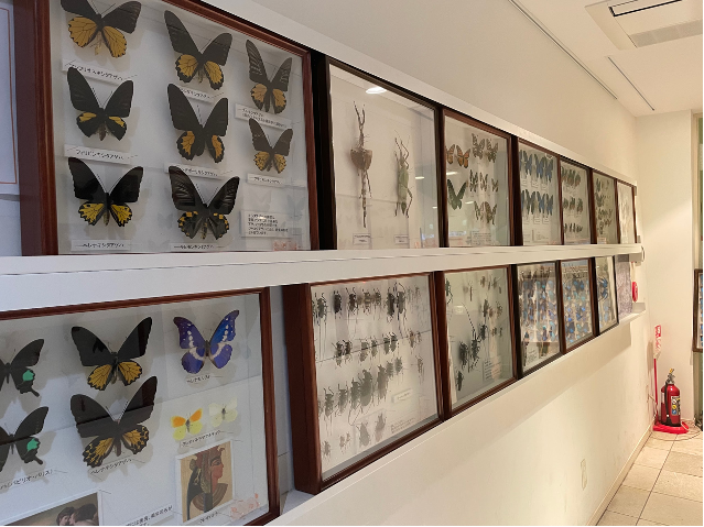 ファーブル昆虫館では、生体展示だけでなく、世界各地の昆虫標本も見どころのひとつです。色鮮やかな蝶や、個性的な形をした昆虫など、種類豊富な標本が展示されており、昆虫の多様性を実感できます。
