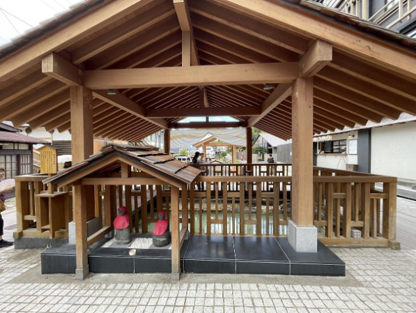 湯畑から少し歩いた先にある「裏草津地蔵」は、近年人気を集める新しい観光スポットです。地蔵源泉の脇には、落ち着いた雰囲気の足湯や顔湯、手洗乃湯があり、いつでも誰でも無料で温泉が楽しめます。