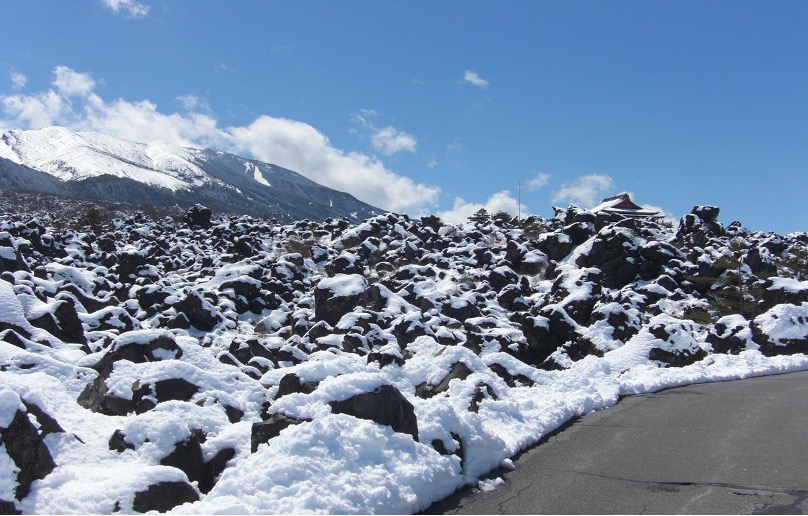 冬になると鬼押出し園は一面の銀世界に変わります。黒々とした溶岩と真っ白な雪のコントラストは息をのむ美しさです。静まり返った園内には凛とした空気が漂い、まるで時間が止まったかのような幻想的な雰囲気を味わえます。